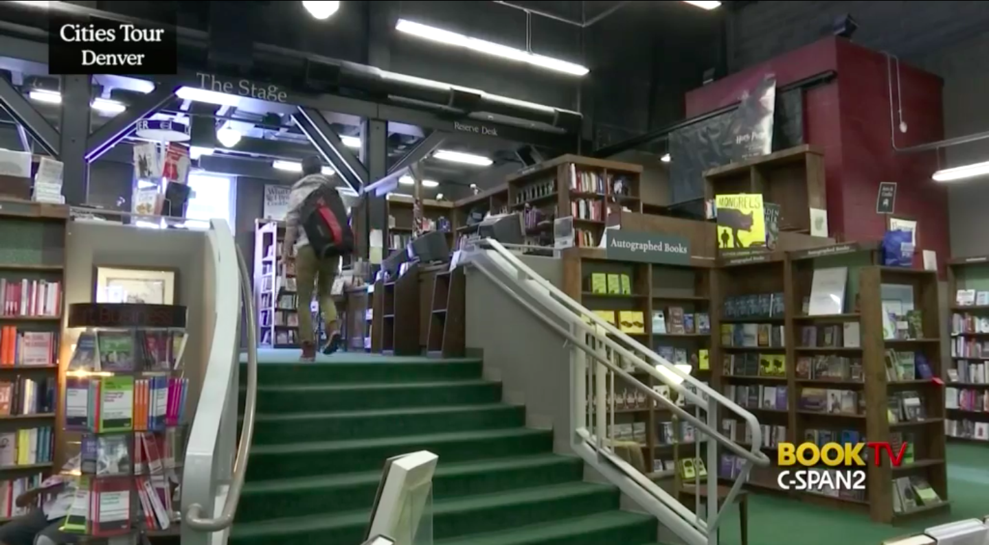 And, here‘s one I missed—it’s an eight-minute video on the history of Tattered Cover. Filmed, I guess, in May or June? Mongrels stuff is on C-SPAN, anyway, albeit blurry in my screencaps: