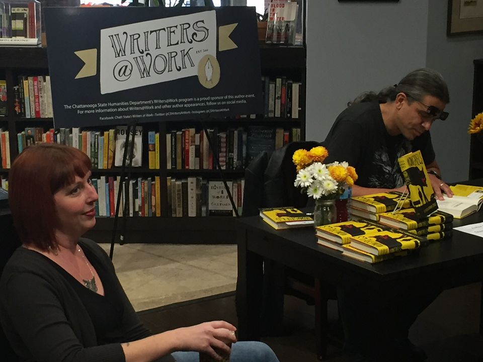 Yeah, this is one of the places I was: Tennessee, the plane landing through the smoke of arson-fires. But? Trees burning smells like trees burning, pretty much. I can’t get ‘arson’ from a whiff, anyway. Thanks to Cherie Priest for hanging out a bit at Starline, and thanks to Starline for hosting: