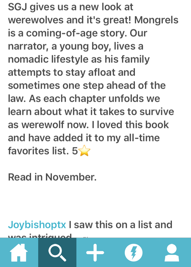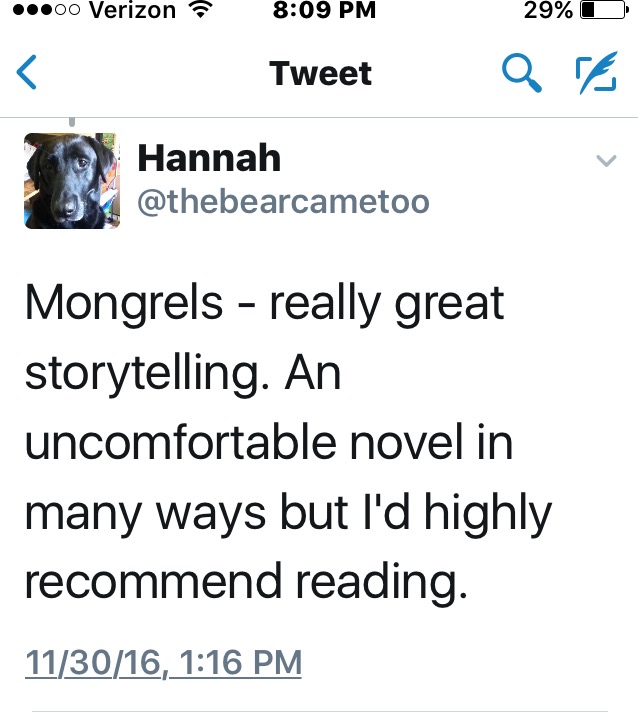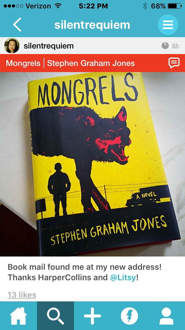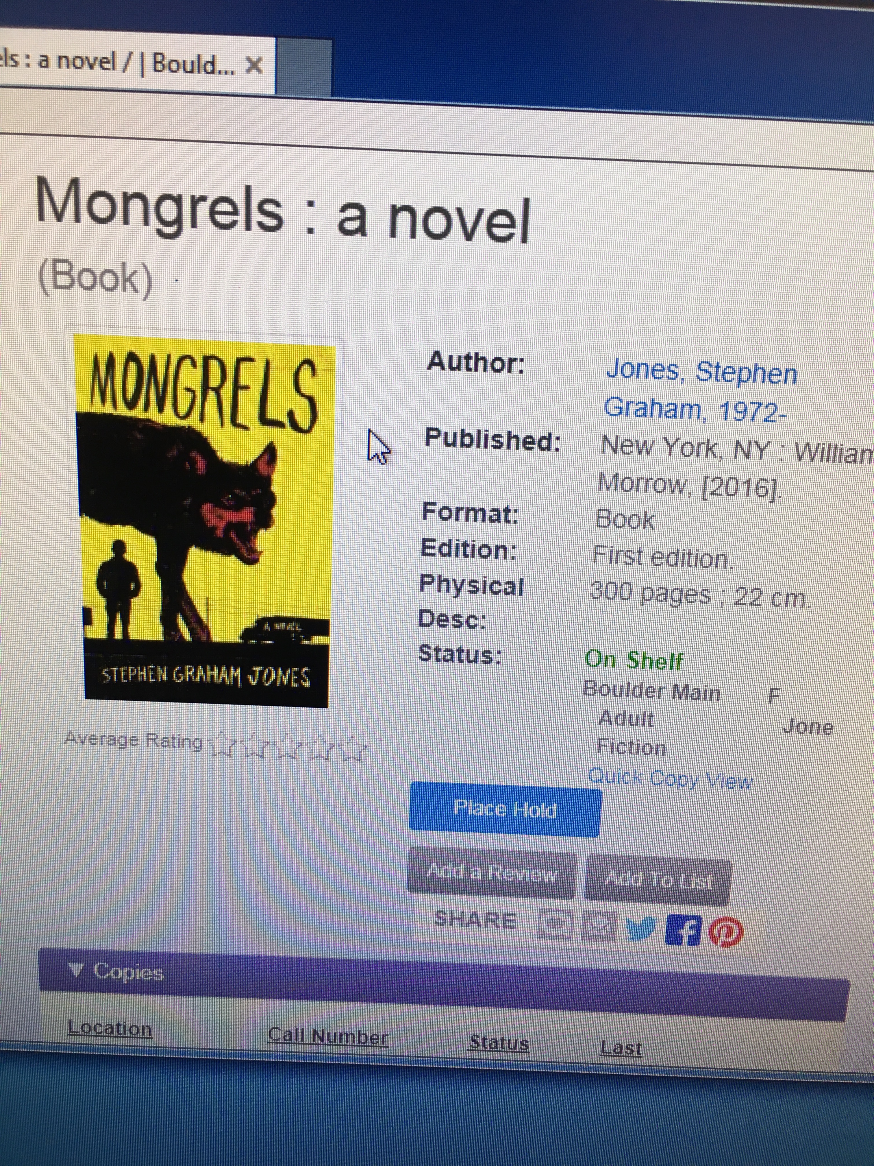 And, c’mon now. Who would go the public library in the mountain kind of town they live in and search up Mongrels and then leave it there for the next user and then also take a pic of it?