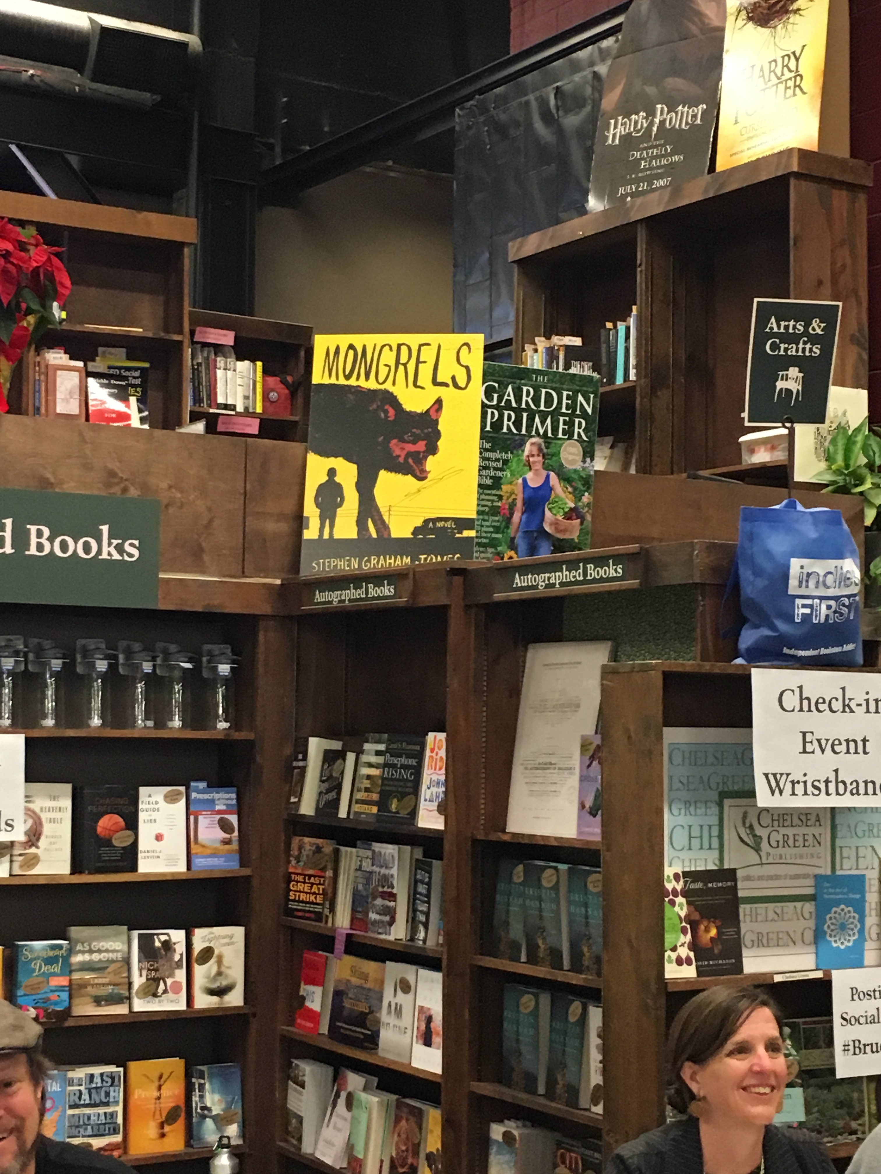 Nice. This is from someone standing in line for the Bruce Springsteen event/book/pic—Tattered Cover still has the Mongrels poster up. Thanks, TC. And? The person standing there was standing there with my hard-won ticket. Because I last-minute went and talked to two classrooms of people who had read Mongrels. Was a great time. I’d always rather talk books than stand in line for six hours. But I am heartbroken not to have gotten that pic with the Boss.