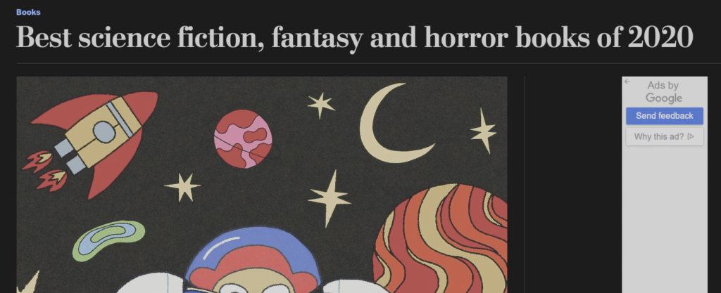 Wow: Time AND Washington Post! November 20, 2020November 20, 2020 https://www.washingtonpost.com/entertainment/books/best-science-fiction-fantasy-and-horror-books-of-2020/2020/11/18/a7dca92e-1aba-11eb-82db-60b15c874105_story.html https://time.com/collection/must-read-books-2020/